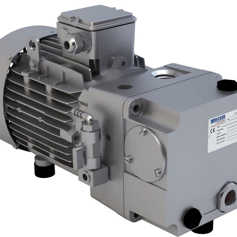 admiten el montaje de otros accesorios sin ningún problema. De serie se sirven con ubicación por recirculación de aceite (con enfriador de aceite integrado) y tapa de cierre, con lo que el ruido emitido se reduce al mínimo. Una válvula de flotador regula la respiración de aceite, lo que permite que las bombas de vacío puedan usarse también en aplicaciones de vacío basto. Un dispositivo (opcional, no de serie) de enfriamiento por agua del aceite alarga considerablemente la vida útil del aceite, incluso en entornos de trabajo muy exigentes.